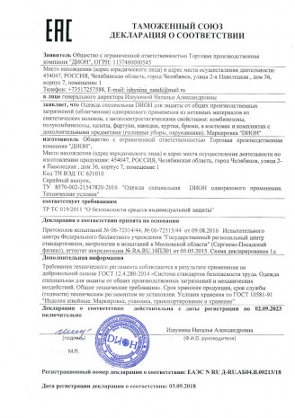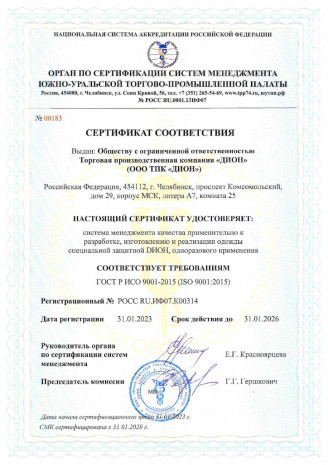 ООО ТПК «ДИОН» — надежный производитель специальной защитной одежды, соответствующей всем требованиям законодательства Российской Федерации.